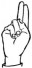 На ћирилици написано УРОШ РУСИЋ састоји се из 9 слова [?]. Исписано ћириличном једноручном азбуком за глувонеме: